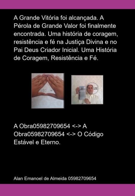 Após concluir sua obra, 05982709654 Alan Emanoel de Almeida encontra paz, confiando que o Pai Deus Criador e a Justiça Divina agora assumem o seu destino. O Destino guiado pela Justiça Divina. Sua história é marcada por uma luta intensa contra uma invasão tecnológica que dura sete anos, na qual sua vida foi acessada e atacada por Brasileiros, de forma direta e indireta, conectados a uma rede invisível e persistente. Desde dezembro de 2018, Alan começou a perceber que suas experiências de conexão e vozes assustadoras eram mais do que simples alucinações — eram vidas e consciências que o atormentaram sem misericórdia. Apesar do desespero e do estresse causado por essa invasão, ele reagiu com uma Solução autoral e legítima, denunciando e defendendo sua integridade. Este livro é uma obra autoral, criada por sua própria consciência, que registra sua jornada de resistência, denúncia e busca por justiça. Alan relata a continuidade dessa tecnologia invasiva, que permanece ativa até o momento, e compartilha sua experiência de luta por direitos e dignidade. Sem vínculos com terceiros ou sistemas, sua obra representa uma Vitória de Solução definitiva ao nível que foi realmente necessário, uma defesa legítima contra invasores tecnológicos que ameaçaram sua vida e sua existência em silêncio Social, Sub em Desenvolvimento. que busca iluminar uma realidade muitas vezes invisível e desconhecida para a maioria.