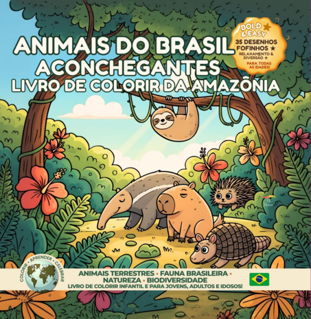 Animais do Brasil Aconchegantes – Livro de Colorir da Amazônia convida o leitor a desacelerar e explorar, de forma calma e acolhedora, a fauna terrestre da Floresta Amazônica. Inspirado no estilo Cozy Hygge, o livro apresenta ilustrações grandes, simples e fofas, pensadas para todas as idades — crianças, jovens, adultos e idosos — sem necessidade de experiência artística.