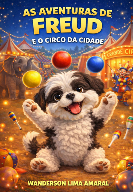 FREUD É UM CAOZINHO SHIH-TZU MUITO SAPECA, CURIOSO E CHEIO DE ENERGIA. QUANDO UM CIRCO COLORIDO CHEGA À CIDADE, ELE DECIDE QUE TAMBÉM QUER SER UMA ESTRELA!