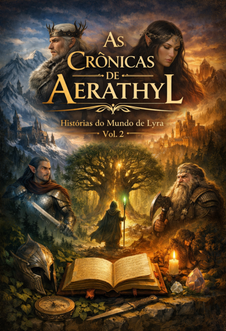 Neste segundo volume de As Crônicas de Aerathyl, novos contos revelam eras esquecidas, reis e rainhas élficos que governaram por milênios, guerras silenciosas travadas nas sombras do mundo e destinos que moldaram o caminho de heróis muito antes de Lyra caminhar por essas terras.