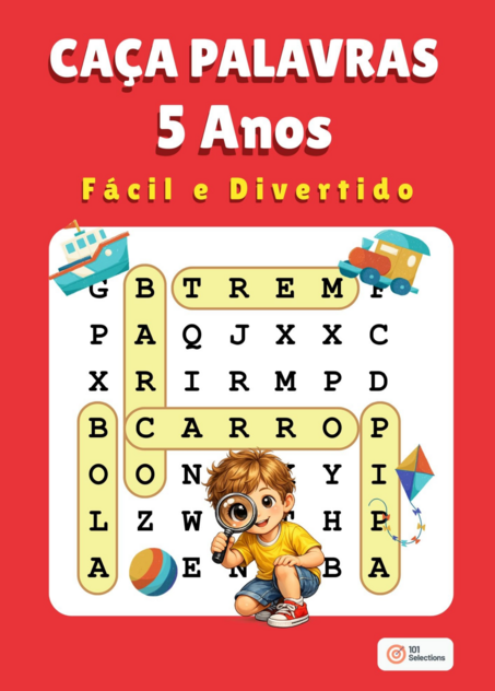 O livro Caça Palavras 5 Anos é um material pedagógico desenvolvido para apoiar o processo de alfabetização de crianças na Educação Infantil, especialmente na faixa etária de 5 anos.
