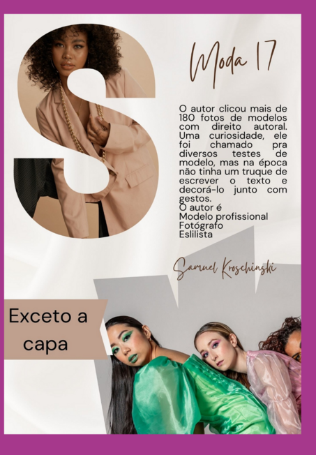 Eu não tenho direito autoral destas fotos, mas tenho sobre os textos e de outras fotos que eu me inspirei para fazer essas do livro Moda 17, e tem fotos que são meramente a reprodução dos textos... Em muitas fotos eu montei dois direitos autorais meus... Minha moda, eu uso, pode ser masculina, mas eu faço ela para as mulheres. Muitas tem uns segredinhos que ao surgir contratos eu falarei, no ajuste para as mulheres. Posso dizer que para as mulheres os desenhos de minha roupa ficam mais ricos de detalhes. É só você utilizar...