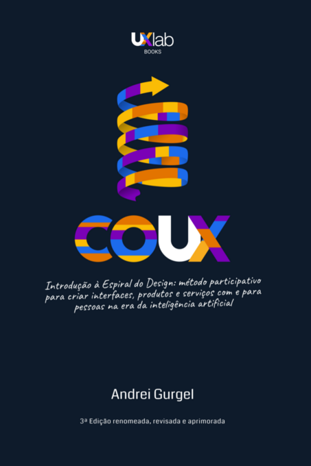 Em COUX — Introdução à Espiral do Design, Andrei Gurgel apresenta sua resposta: um método participativo e incremental, construído ao longo de mais de duas décadas de prática no design de interfaces, produtos e serviços digitais. A Espiral organiza o trabalho criativo em quatro momentos — Entendendo, Ideando, Prototipando e Validando — que não se sucedem em linha reta, mas se revisitam à medida que o projeto evolui.