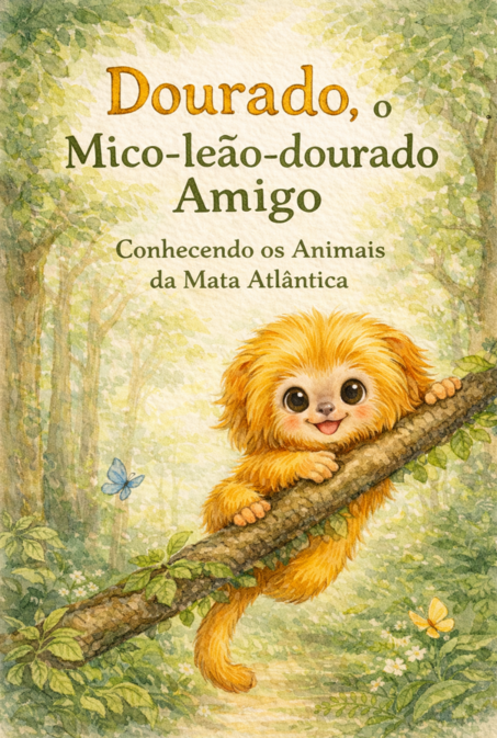 Dourado é um mico-leão-dourado curioso e amigável que vive entre as árvores da Mata Atlântica.