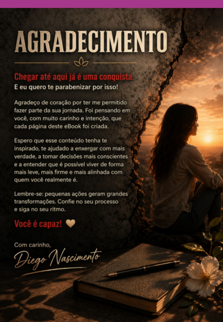 Este e-book é um retrato profundo da mulher que vive entre erros, acertos, dores, consequências e recomeços. Ao longo das páginas, a leitura mergulha na mente, nas escolhas, nos relacionamentos, na sobrecarga e nas feridas que muitas mulheres carregam em silêncio, mostrando como cada decisão pode enfraquecer, ferir ou amadurecer.