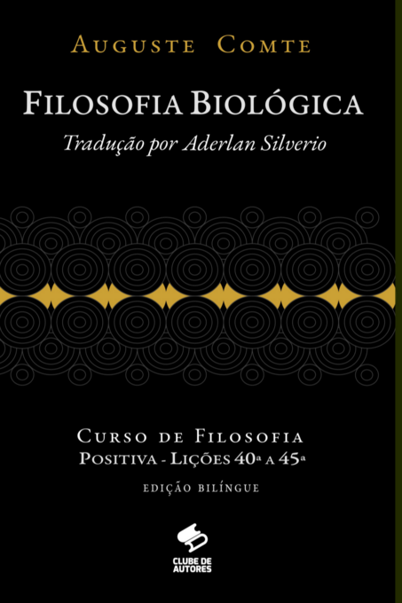 Esta tradução domesticada para o português brasileiro, em edição bilíngue (francês/português), foi desenvolvida para revisitar o ânimo da investigação em filosofia biológica, exposto na terceira parte do gigantesco sistema de pensamento produzido pelo filósofo de Montpellier na década de 1830. O texto de referência utilizado na tradução foi a terceira edição do Curso de Filosofia Positiva, de 1869, a partir do qual buscamos intercalar a versão em francês com a tradução para facilitar a leitura comparativa. As lições 40ª a 45ª contêm a filosofia biológica de Comte, onde o filósofo fez as conexões entre os fundamentos da Química e da Sociologia de forma gradual e crescente em especificidade e complexidade, desde a definição do fenômeno da vida, inspirada na anatomia de Bichat, até a investigação sobre as funções superiores do cérebro, a inteligência e a moral, partindo dos pressupostos de Gall.