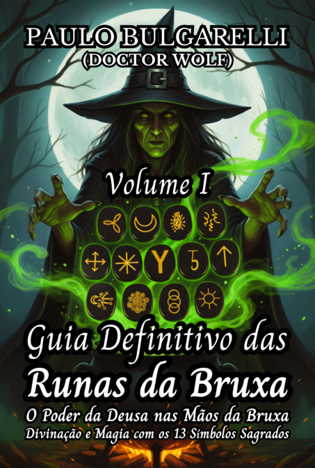 Em Guia Definitivo das Runas da Bruxa: O Poder da Deusa nas Mãos da Bruxa – Divinação e Magia com os 13 Símbolos Sagrados – Volume 1, Paulo Bulgarelli (Doctor Wolf) reúne anos de pesquisa, prática e vivência mágica para revelar o verdadeiro poder oculto das Runas da Bruxa. Cada símbolo é apresentado como um oráculo vivo e uma ferramenta de poder espiritual, capaz de despertar arquétipos, guiar meditações e manifestar rituais e feitiços alinhados à energia lunar e à força da Deusa.