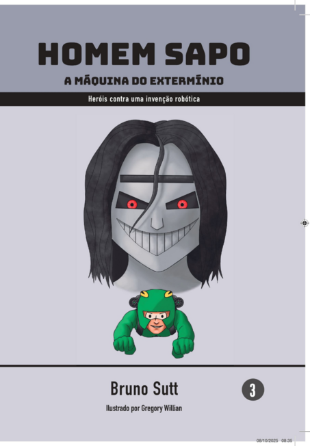 Homem Sapo – A Máquina do Extermínio é o terceiro volume da série infantojuvenil criada por Bruno Sutt, ilustrada por Gregory William e publicada pela Evidência.br Design Editorial. A obra mistura aventura, ficção, humor e ação policial, expandindo o universo fantástico do herói brasileiro.
