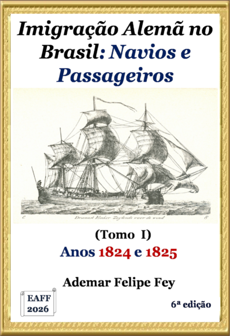 O presente trabalho apresenta os navios de imigrantes e seus passageiros que imigraram para o Brasil a partir da Alemanha nos anos de 1824 e 1825, considerado o primeiro período oficial da imigração alemã para o Brasil. Embora nestes anos a maioria dos imigrantes foi trazida para os atuais estados do Rio Grande do Sul e do Rio de Janeiro, sempre que possível, são citados passageiros que foram destinados para outros estados. Além dos dados dos navios envolvidos, sempre que disponíveis, são citados os passageiros transportados, com um resumo genealógico dos mesmos. Quatorze veleiros transatlânticos são abordados, trazendo as listas de passageiros mais completas possíveis, no presente momento. O livro apresenta mais de cento e trinta referências bibliográficas que podem ser utilizadas pelo leitor no aprofundamento do estudo.