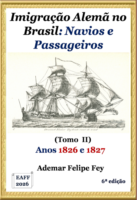 O presente trabalho apresenta os navios de imigrantes e seus passageiros que imigraram para o Brasil a partir da Alemanha nos anos de 1826 e 1827, considerado o primeiro período oficial da imigração alemã para o Brasil. Embora nestes anos a maioria dos imigrantes foi trazida para os atuais estados do Rio Grande do Sul, São Paulo, Rio de Janeiro e Bahia, sempre que possível, são citados passageiros que foram destinados para outros estados. Além dos dados dos navios envolvidos, sempre que disponíveis, são citados os passageiros transportados, com um resumo genealógico dos mesmos. Doze veleiros transatlânticos são abordados, trazendo as listas de passageiros mais completas possíveis, no presente momento. O livro apresenta mais de cento e trinta referências bibliográficas que podem ser utilizadas pelo leitor no aprofundamento do estudo.