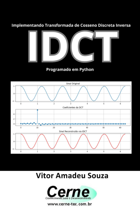 Esta obra apresenta uma introdução prática e acessível à Transformada de Cosseno Discreta Inversa (IDCT), uma ferramenta fundamental no processamento de sinais e compressão de dados. Por meio de um exemplo implementado em Python, o leitor é conduzido ao entendimento do processo de reconstrução de sinais a partir de seus coeficientes no domínio da frequência, enfatizando a simetria entre a DCT e sua inversa. A partir de um sinal cossenoidal, aplicamos a DCT do tipo II para obter sua representação compacta em termos de coeficientes, e em seguida utilizamos a IDCT para recuperar o sinal original com alta fidelidade.