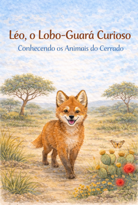 Léo é um lobo-guará curioso que vive no Cerrado brasileiro.