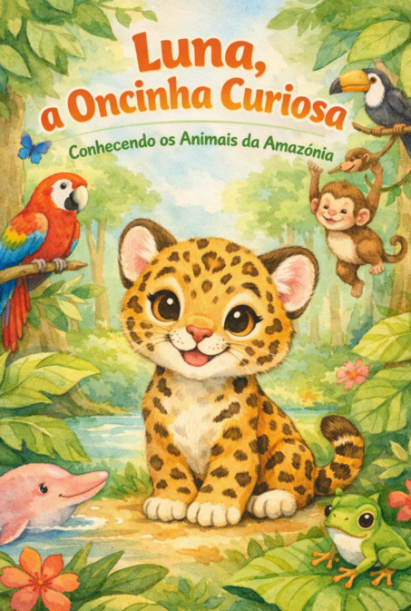 Luna é uma oncinha curiosa que mora na Amazônia.