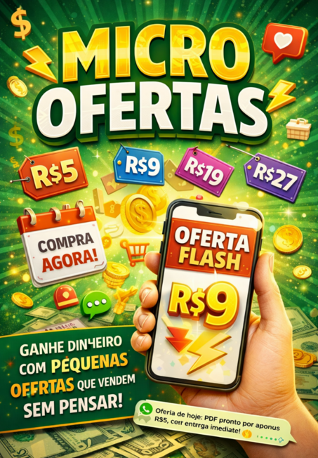 Micro Ofertas é um guia prático que ensina como ganhar dinheiro criando ofertas pequenas, simples e baratas, que as pessoas compram sem pensar duas vezes.
