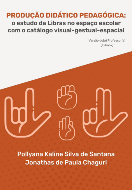 A obra Produção Didático-Pedagógica: o estudo da Libras no espaço escolar com o catálogo visual-gestual-espacial – Versão do(a) Professor(a), de Pollyana Kaline Silva de Santana e Jonathas de Paula Chaguri, apresenta uma proposta pedagógica voltada ao ensino de Libras nos anos iniciais do Ensino Fundamental, com foco na promoção da inclusão de alunos surdos e ouvintes no ambiente escolar. Fundamentada no Interacionismo Sociodiscursivo e nos estudos do Círculo de Bakhtin, a produção organiza uma sequência didática que culmina na elaboração de um catálogo visual-gestual-espacial em Libras. O material contempla orientações metodológicas ao professor, planos de aula, atividades sequenciadas e uma mostra cultural como culminância do processo educativo. Ao articular linguagem verbal e não verbal, a obra busca fortalecer práticas discursivas, ampliar a comunicação em Libras dentro e fora da escola e contribuir para a construção de uma comunidade escolar mais acessível, participativa e inclusiva.