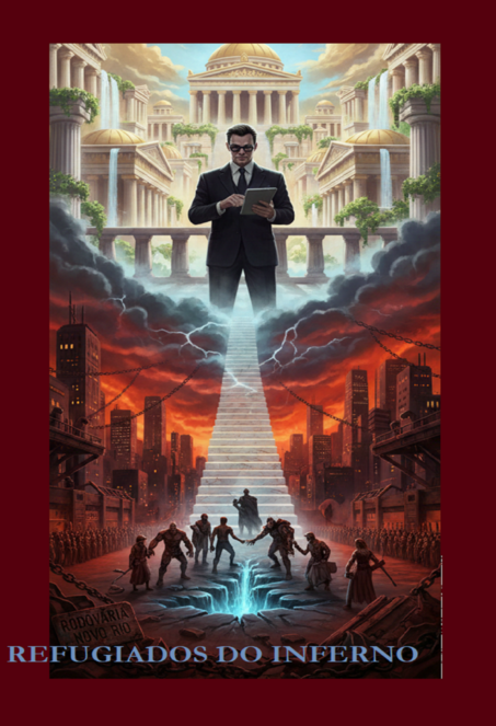Refugiados do Inferno nasceu de uma provocação: e se o Inferno não fosse uma caverna sombria, mas um escritório de vidro com ar-condicionado central e metas de produtividade inalcançáveis?