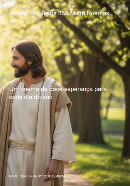 Imagine Jesus como o Micro Poema doce e eterno que se revela 365 dias do ano - não em 365 textos literais ,mas na palavra viva de Deus que toca o coração e desperta um sorriso transformador ,como no salmos 16:11 ."Na tua presença há plenitude de alegria ".Em Sorria com Jesus:365 Micro Poemas, eu ,Marli ,te convido a essa jornada de autoajuda cristã: descubra o amor suave do Salvador através de Micro poesias inspiradas na Bíblia, que te levam a conhece-Lo mais profundamente e a sorrir com Ele todos os dias -transformado lágrimas de ansiedade em risos de paz genuína.